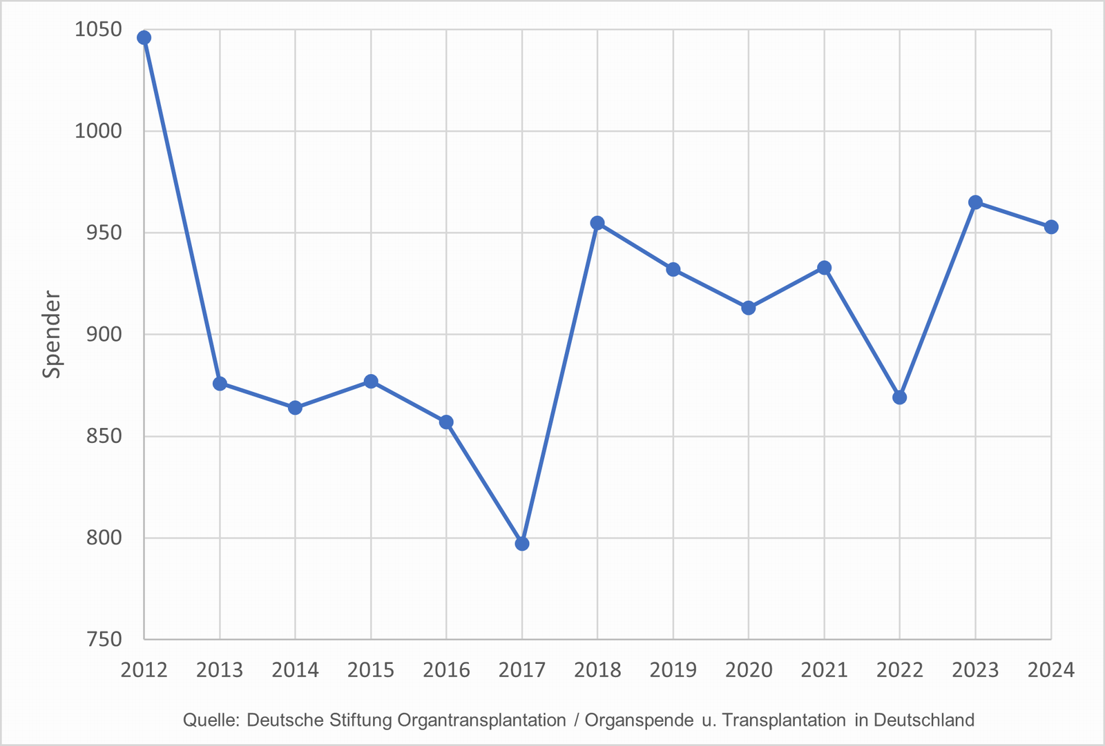 Anzahl der Organspender seit 2012